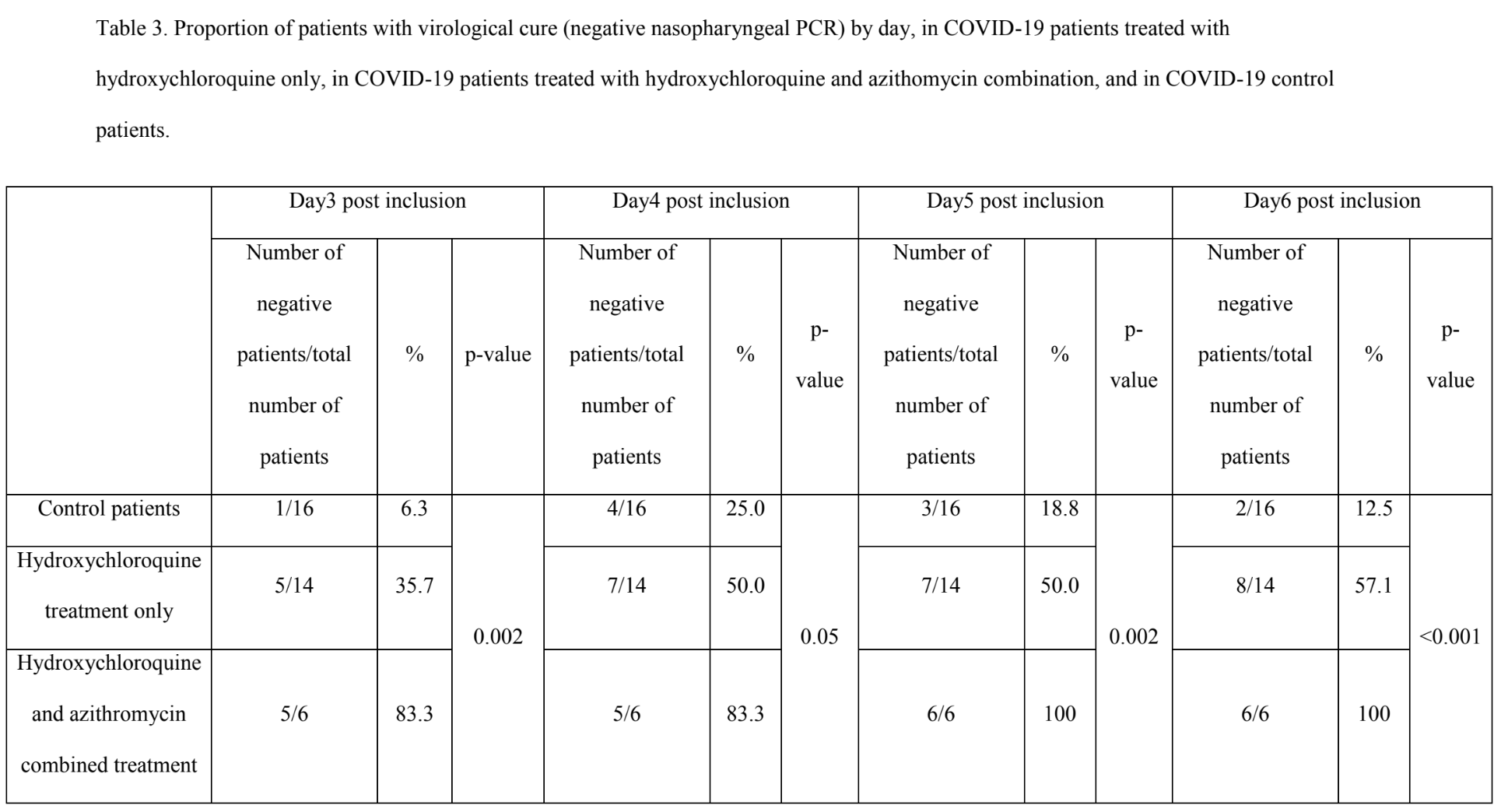 Table of time course of patient outcomes from Gautret et al. 2020.